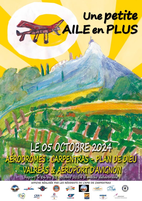 • Pour 2024, deux plateformes aéronautiques se sont mobilisées puisqu’avec l’appui de la Base aérienne 115 d’Orange, l’aérodrome de Plan de Dieu se joint à celui de Carpentras. Ces deux plateformes permettront de vivre l’expérience d’un vol à près de 80 personnes en situation de handicap des APEI de Carpentras et de Ucheaux; Pour cela 5 structures ULM et deux aéroclubs sont mobilisés !!! Handivol devient « Une petite aile en plus ».